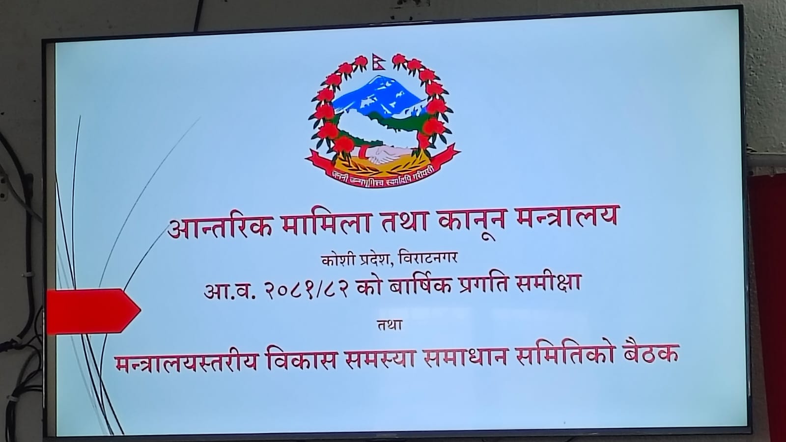 यस मन्त्रालयको आ.व. २०८१/८२ को बार्षिक प्रगति समीक्षा तथा मन्त्रालयस्तरीय विकास समस्या समाधान समितिको बैेठक